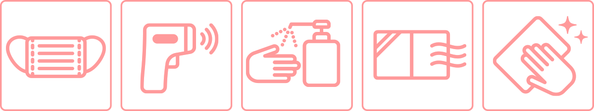 ●備え付けのアルコール消毒と、スタッフによる検温をさせていただます。