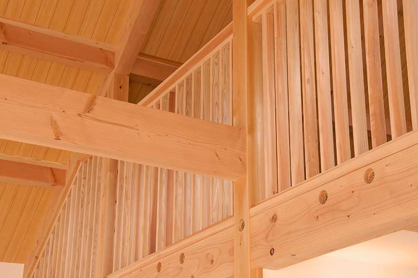 材料選びに妥協はありません。「厳選した材料を適材適所に」という言葉をモットーに、木材は自分たちの目で確かめ、納得したものだけを仕入れています。同じ環境で育った木が一番ということから、三重県産材利用を心がけています。また、仕入れた木材は自社製材工場で加工を行い、確かな技術を持った職人が仕上げます。
